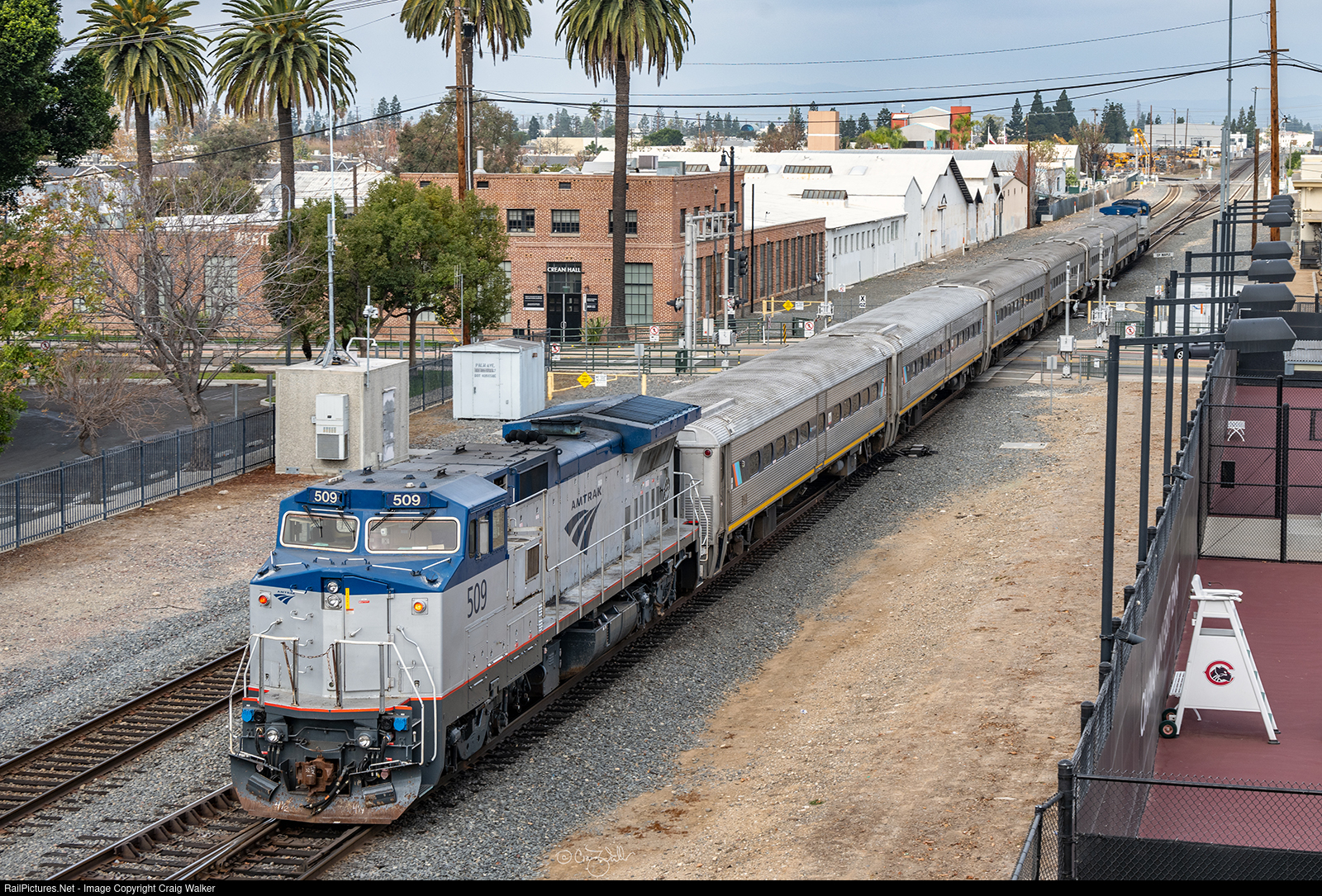 Amtrak Pacific Surfliner 572, making its way from San Diego to Los Angeles, is radically different than the usual Surfliners: (A) It has a locomotive on each end, (B) each locomotive is a somewhat rare GE Dash 8-32BWH (only 20 were built, all for Amtrak), (C) this train is comprised of six former NJ Transit "Comet" cars, rather than the usual California Cars/Surfliner Cars, and, as a result (D) this train has no Business Class cars nor any cars with any sort of food service. Amtrak Dash 8-32BWH 503 leads this train, with California Department of Transportation (CDTX) coaches 5006, 5007, 5001, 5005, 5010 and 5012, and Amtrak Dash 8-32BWH 509 bringing up the rear. Several of the Surfliner cars have, of late, been having some issues and, coupled with higher holiday traffic between Christmas and New Year's Day, this equipment was pressed into service. (Orange, California – December 27, 2024)