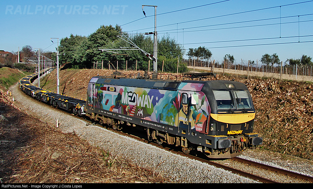 | A chartered Medway train, 98204, from Vilar Formoso to Entroncamento, pulled by the locomotive Siemens 4702.