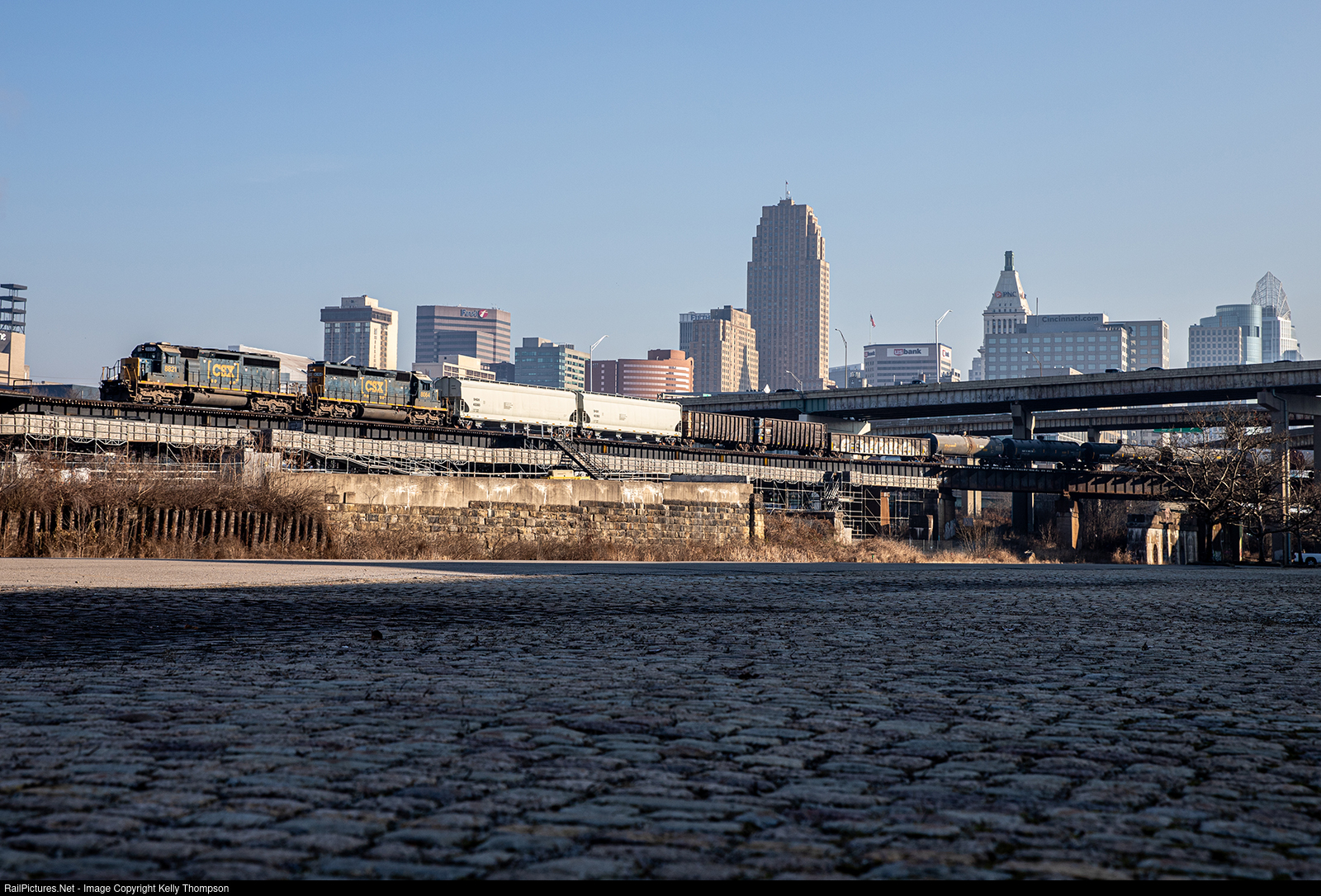 | J767 is on final approach into Queensgate as it navigates its way through downtown Cincinnati, Ohio. The duo of SD40-2's made good time into the city and will flip back in a couple hours for home at Worthville, Kentucky. |