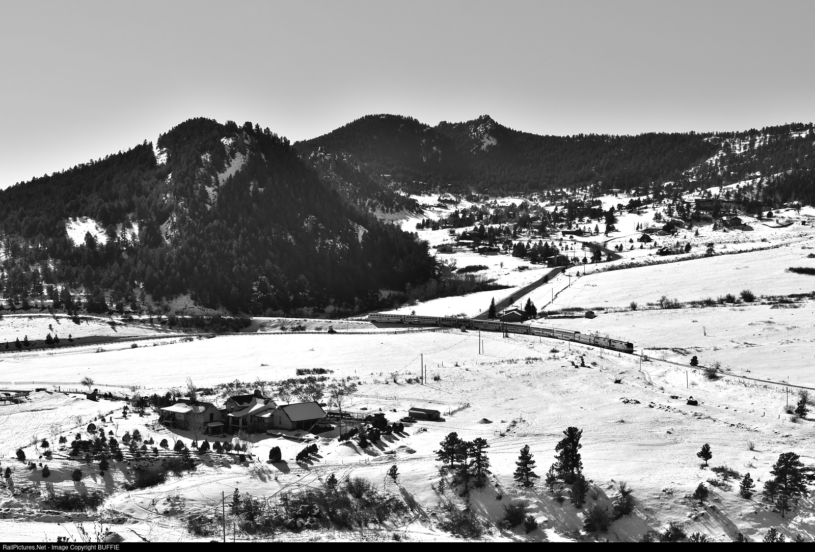 The California Zephyr runs through Coal Creek Canyon after a heavy snow the night before blankets the valley.