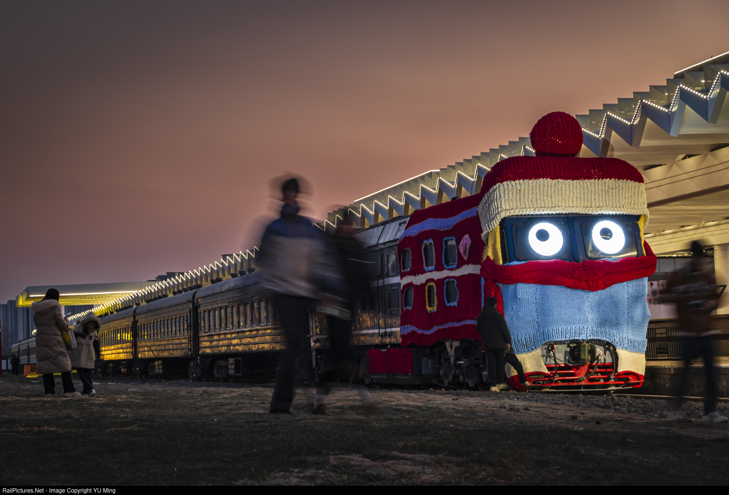 A special decoration on the retired locomotive for the new year.