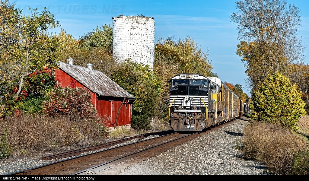 | NS 11Q with NS 1844 an EMD SD70ACC flys west through a very photogenic scene in Huron Ohio, just behind me is the Control Point known as Barrows, formerly known as East Shinrock. |