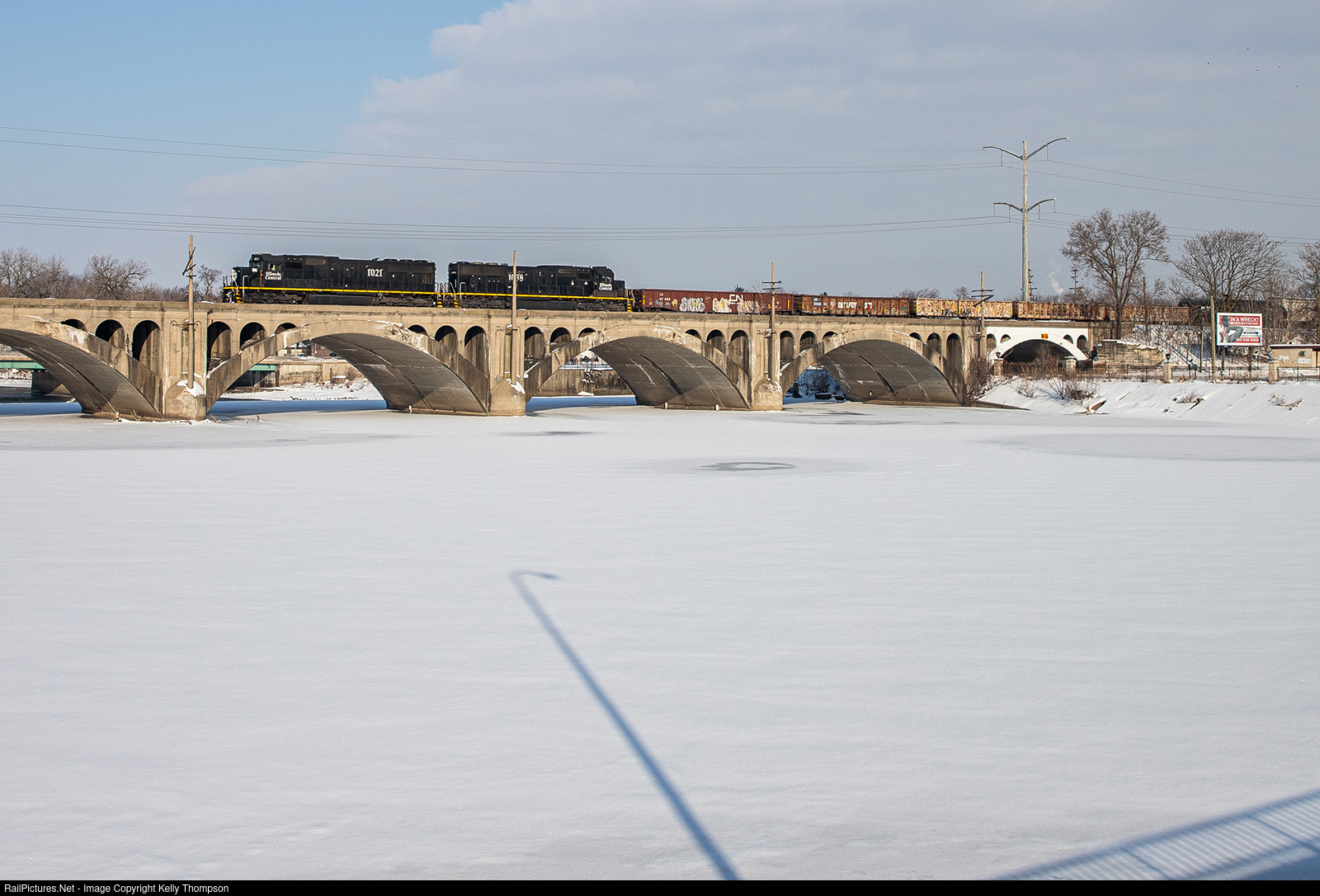 | IC 1021 leads southbound CN A408 over the frozen kankakee River. The two IC SD70's are right at home as they'll be gliding down the former IC main all the way to Centralia. |
