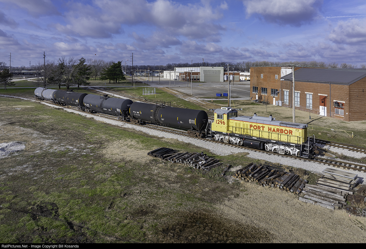 Port Harbor Railroad 1296 with a string of ethanol cars. There is a large ethanol processing plant at the port.