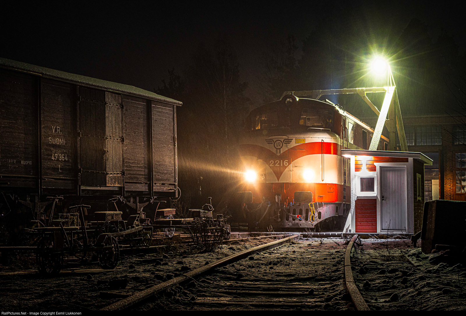 | The giant has awaken as the biggest mainline diesel locomotive of Haapamäki museum locomotive society rolls out from its shed on the turntable. The outside world is full of darkness and the weather is cold, but the Dr12 is here to bring some warmer tones on the museum depot as preparations for the upcoming rides on weekend has to be done. |