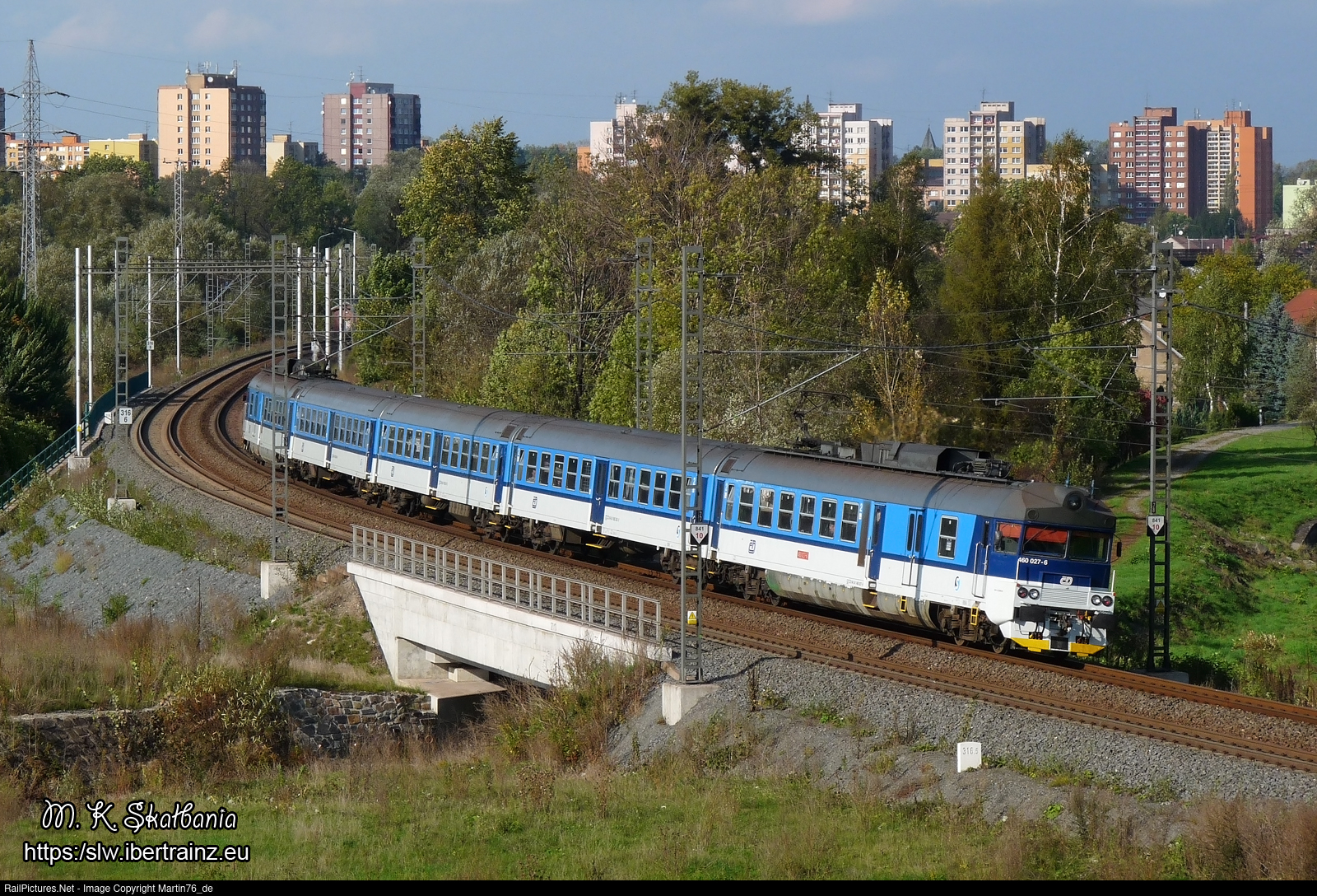 The multiple unit electric train 460.027/460.028 as passenger train from Ostrava-Svinov to Mosty u Jablunkova.