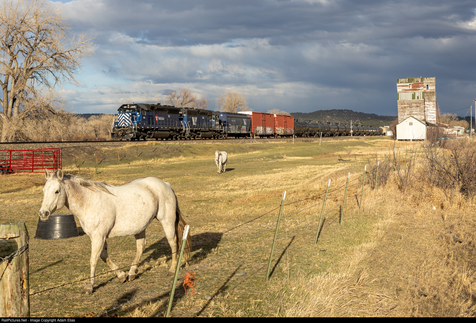 LAUBOZ heading through the small Montana town of Reed Point on the MRL 2nd Sub. This horse was the only horse that stayed mostly still as the train approached and went by. Much appreciated, horse!