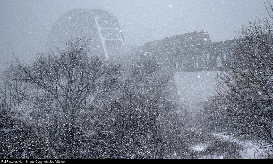 Snow comes down hard as LIRC's JXTR returns to Indiana after interchanging with the NS in Louisville.
