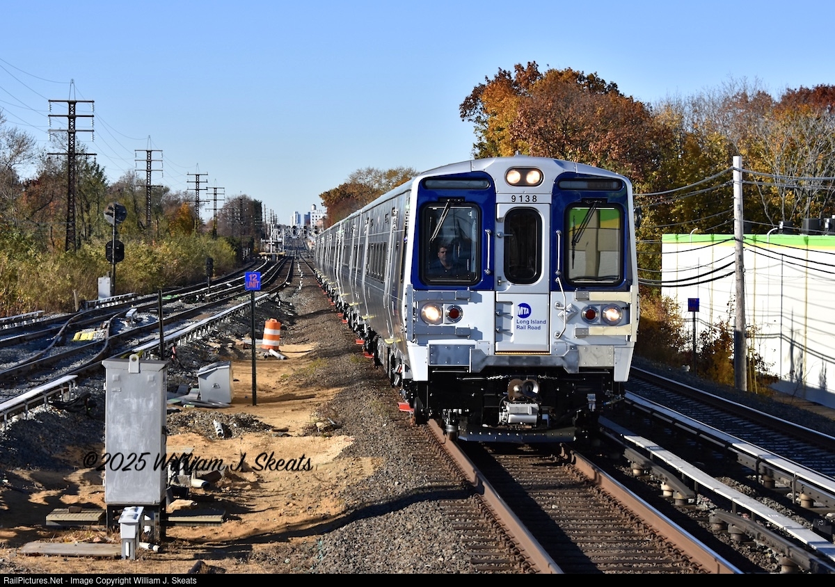"TESTING TESTING" M9 Test train heading on the Main Line about to pass through the Floral Park Station. At Ronkonkoma the train turn and will return westbound back to Queens.