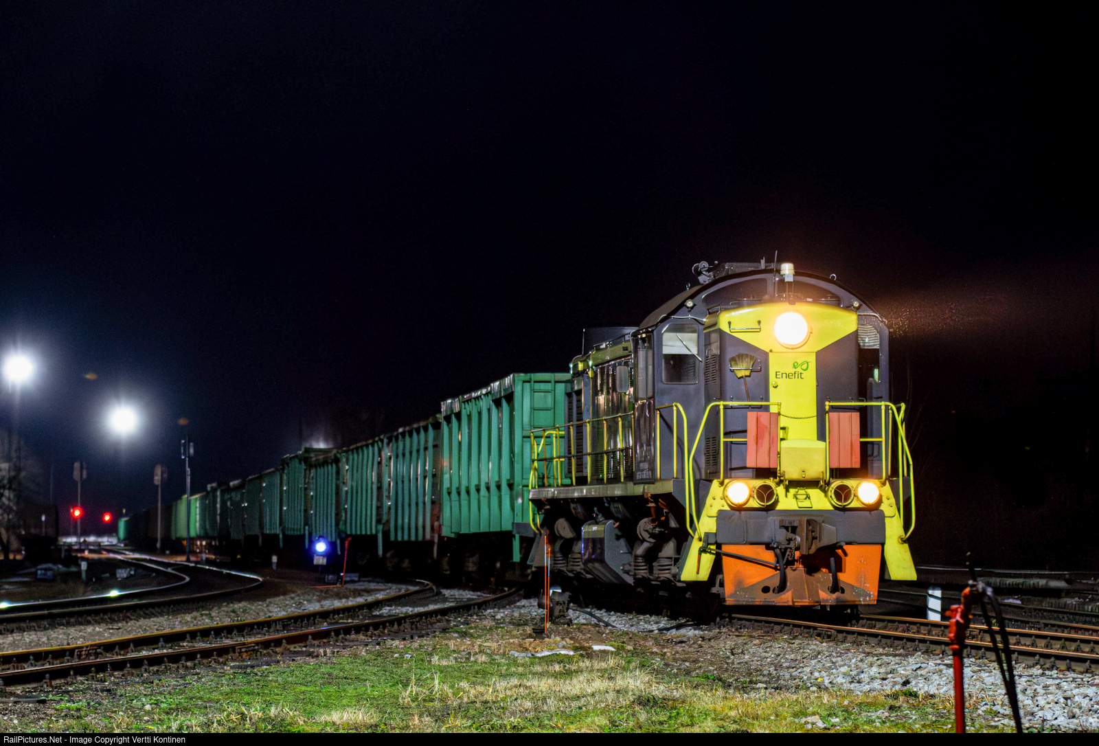 | Enefit TEM2 1936 departing Ahtme yard with an oil shale train to Musta power plant. The Estonian government owned Enefit has a decent size shortline network for the transport of oil shale from their mines to their powerplants. For power they use Russian built TEM18 diesel locomotives and Soviet TEM2 diesel locomotives, based on the ALCO RSD-1 designs that were imported under Lend-Lease during WWII. |