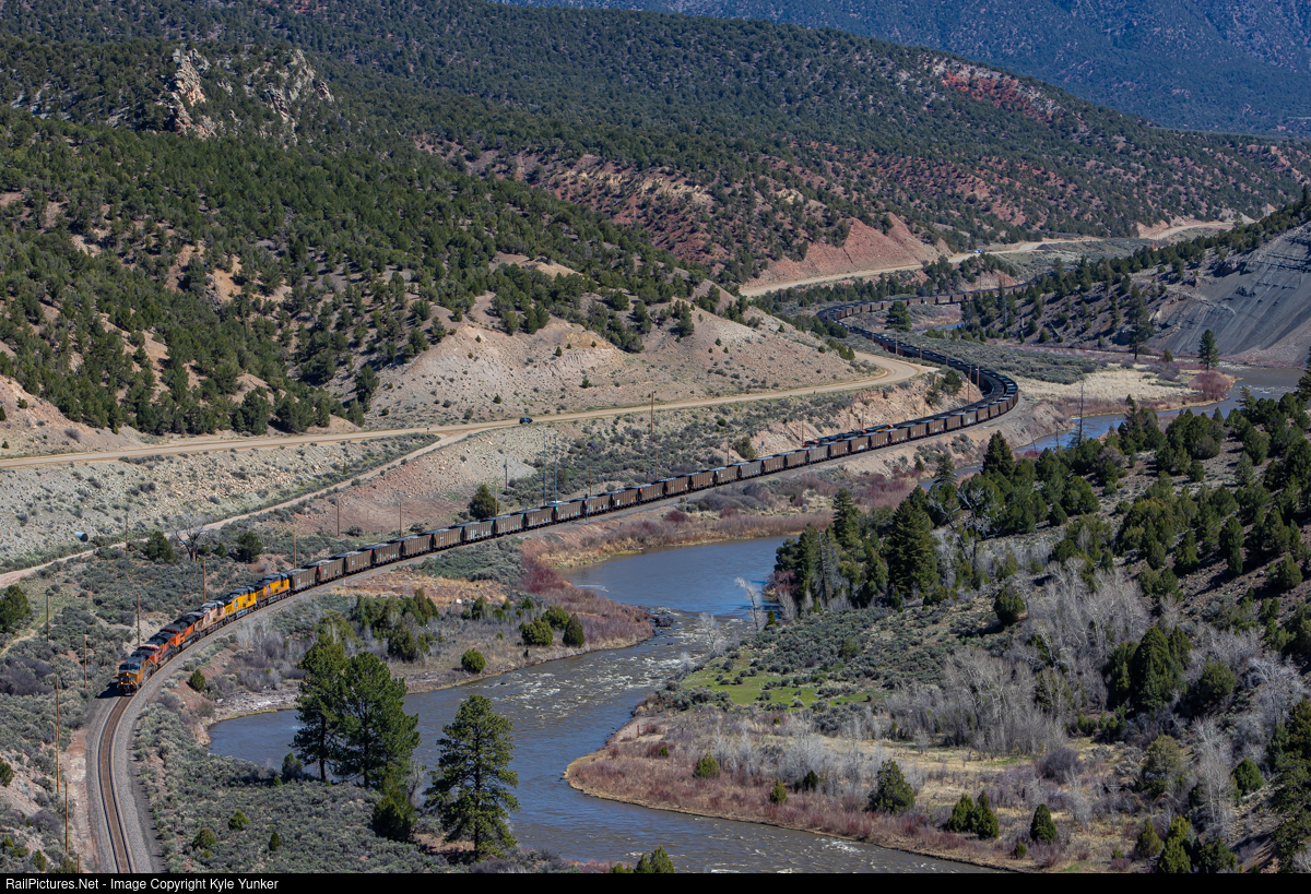 An empty UP coal train follows the Colorado River through Yarmony nearing the crew change point at Bond