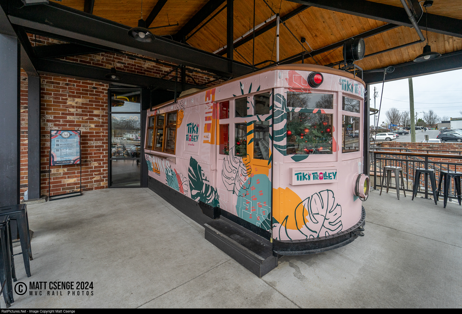 A focal point of the Marietta Square Market food hall in Marietta, GA is their 1922 streetcar on the front porch. The car is of the type operated by the Atlanta Northern between Atlanta and Marietta from 1905-1944. For some time, the car was the "Tiki Trolley," a tropical-themed bar offshoot by one of the restaurants within the food hall. As of December 2024, the trolley has been repainted into its Atlanta & Northern paint scheme.
