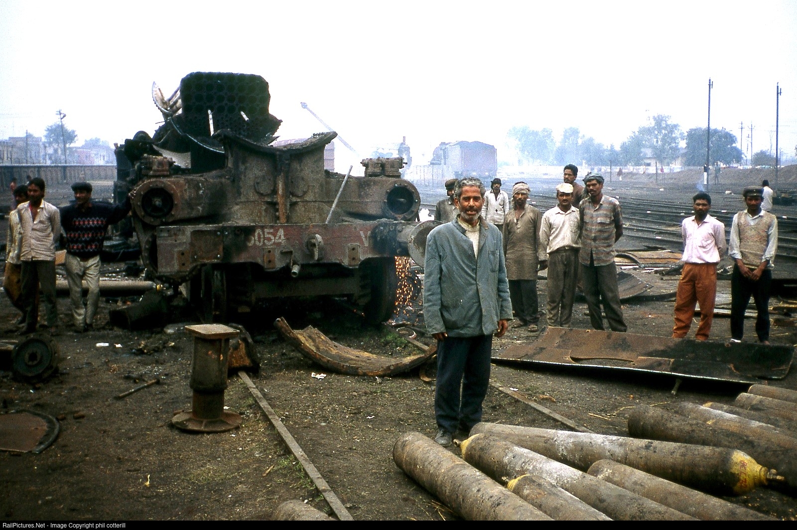| 30 years ago today. Workers involved scrapping loco 15054 pose for a photo at Firozpur loco shed in India`s Punjab. The loco was a 5 feet 6 inch gauge 4-6-2 Pacific loco built in 1967. |