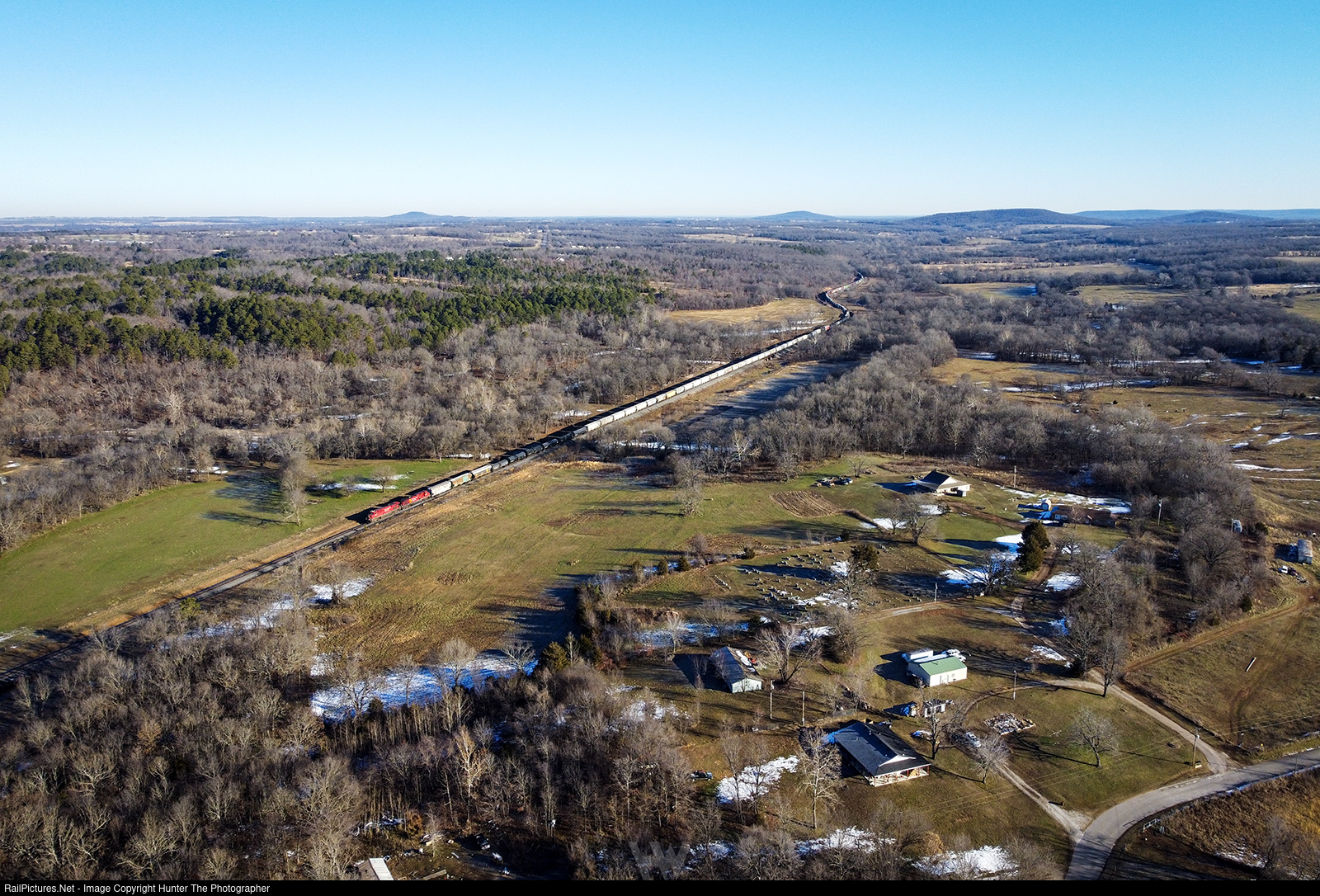 Red in Baron | A pair of bright red locomotives from the former Canadian Pacific fleet lead southbound CPKC manifest train M252 at Baron, OK on the beautiful morning of Thursday, January 16, 2025. Patches of snow remain on the ground left over from Winter Storm Cora, which blew through the area about a week ago.