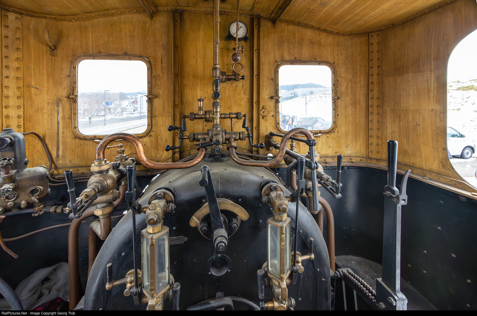 In the cab of the 0-6-0 Ed 3/3 # 3 "LANGNAU" of the former Emmentalbahn, built by SLM in 1881. The locomotive got a new boiler in 1909 with 12 bar maximum pressure. Owned by the Dr. Ernst Dübi foundation and from 1980 to 2016 exhibited in the Swiss Museum of Transport in Lucerne, then stabled in Arth Goldau and Rain LU. Now back on the old home rails and probably operational again from may 2025 for Dampfbahn Bern (DBB).
