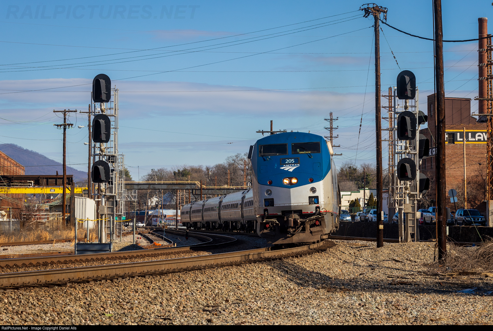 | The mid day Amtrak has just dropped passengers off in Roanoke and is backing up to hit the wye to head to its parking place until the evening run back north. |