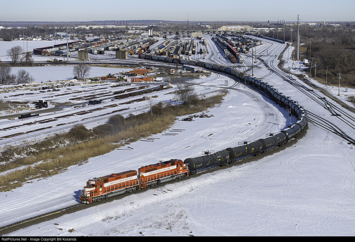 Terminal Railroad is doing some work in the yard at Madison on this very cold morning. 3008 is a GP40M-3 and 308 is a yard slug which is always paired with 3008.