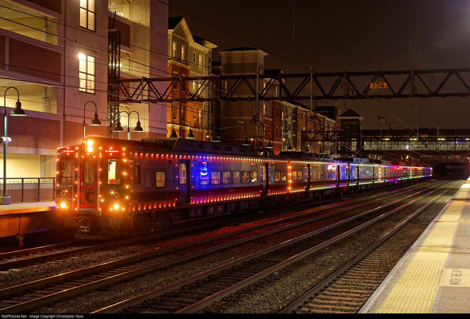 Metro-North's Holiday Lights Train, has just made its last stop at Harrison, on the New York City to Harrison express train.