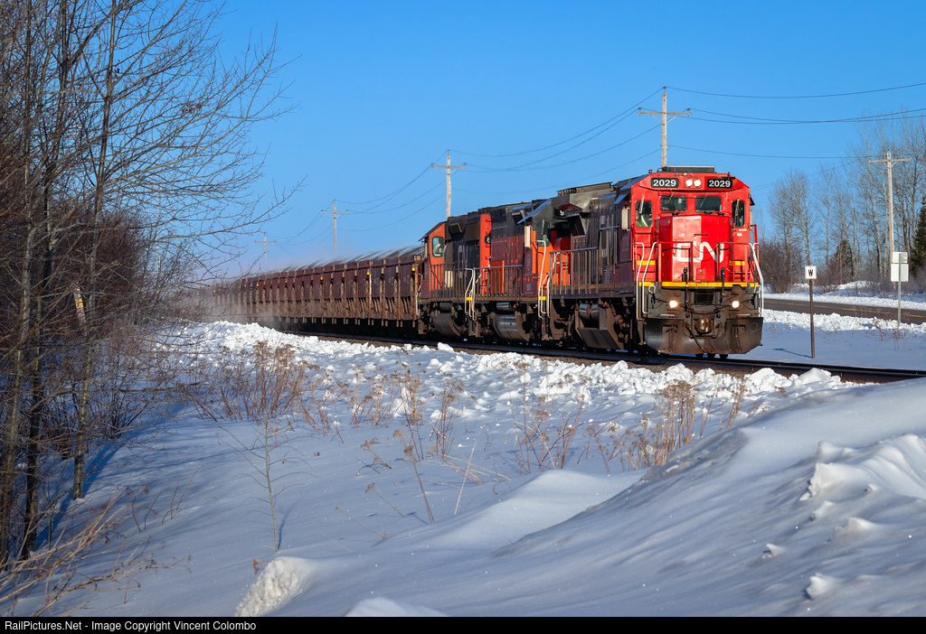 | CN 2029 leads U717 southbound at Burnett Road in Burnett, MN. Good power, steaming hot taconite, and golden sunshine made this chase a good one. |