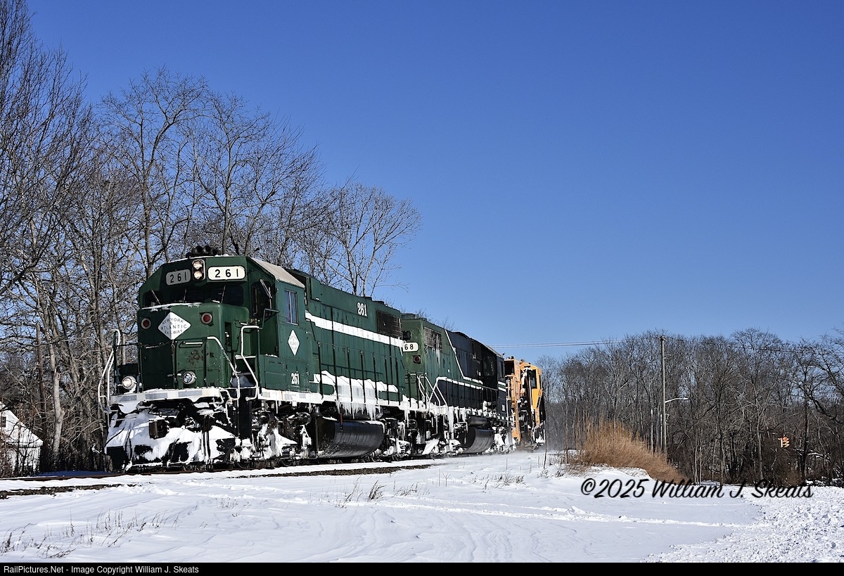 | Return trip back to Ronkonkoma of a LIRR Snow plow run to Greenport and return. NYAR GP38-2 261 & 268 pulling Harsco Rail spreader ditcher LI 4230 through Block Limit R in Jamesport. Winter Storm Keenan blizzard of 2022 shut down the Main Line from Ronkonkoma to Greenport. |