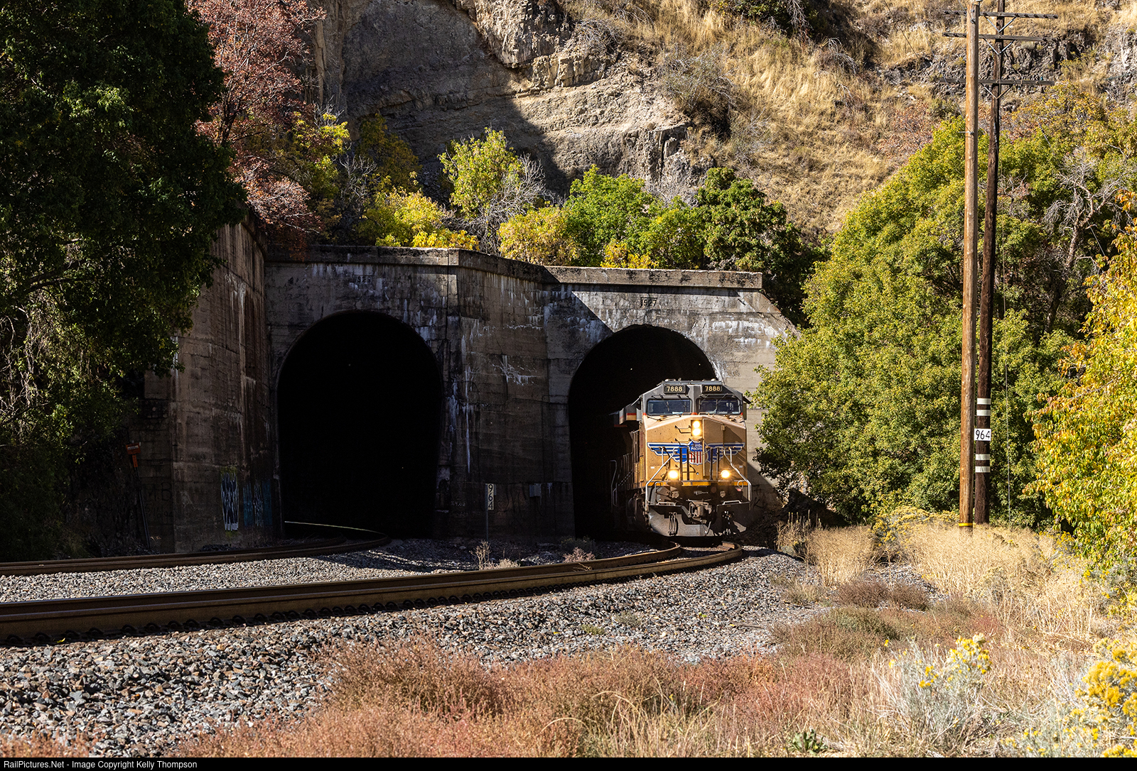 UP 7888 makes its way east through Morgan and through the double tunnels just outside of town.