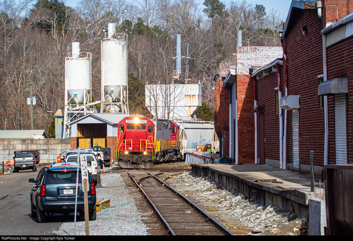 | Georgia Northeastern's Tate - Marietta southbound eases into Canton by some old warehouses, 454 miles from Louisville, KY via the L&N. |