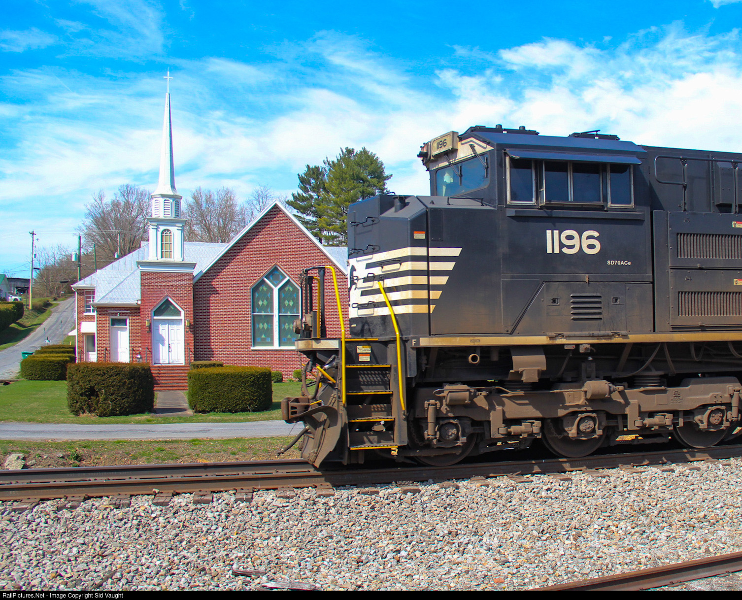 | Leading a type of train given many names, none flattering. This one switches several yards on its way to the destination, and runs on a MATS priority. Make it arrive tomorrow sometime. Meadow United Methodist pprovides a nice background. |