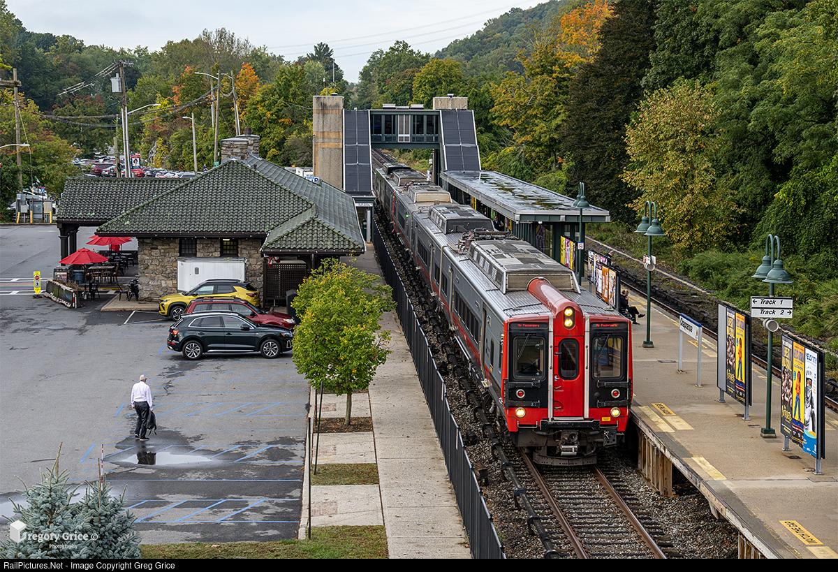 On the morning of September 30th, 2024, Metro-North Railroad train 2631, with Kawasaki M8s, passes the station at Chappaqua, New York while heading north up the Harlem Line.