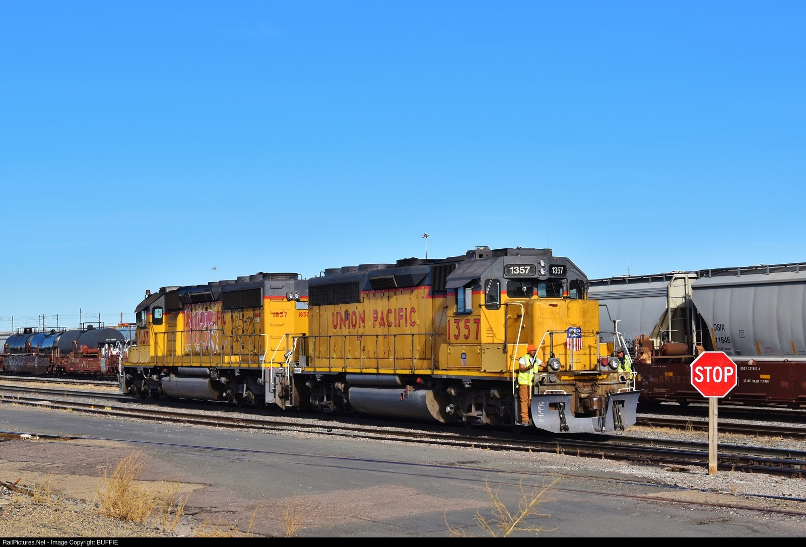 UP 1357 (GP40-2) brings its crew in from the North Yard in Denver, Colorado.