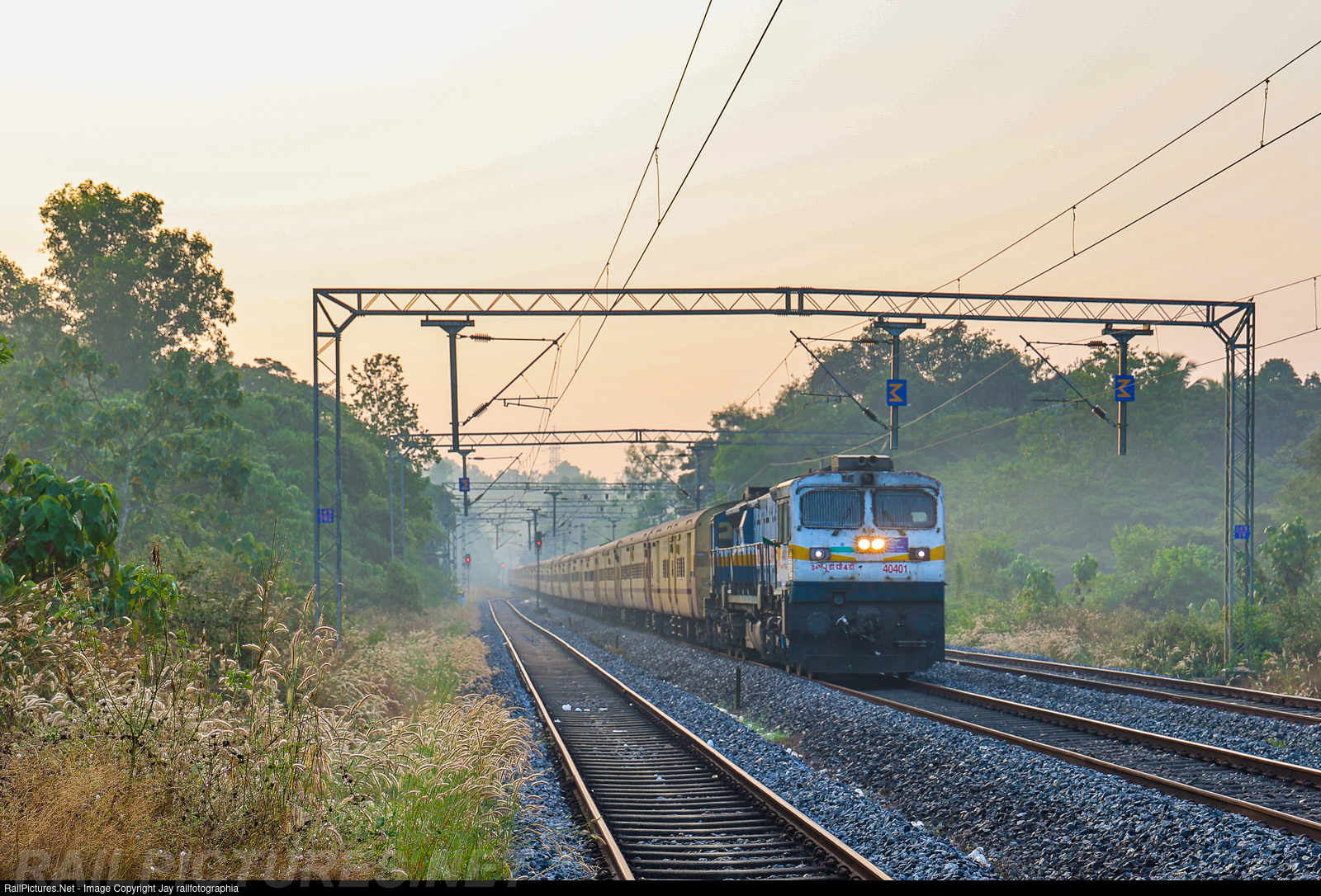 Murdeshwar Express skipping Neralakatte station on a misty morning at the sunrise time on its way to Mangaluru Jn