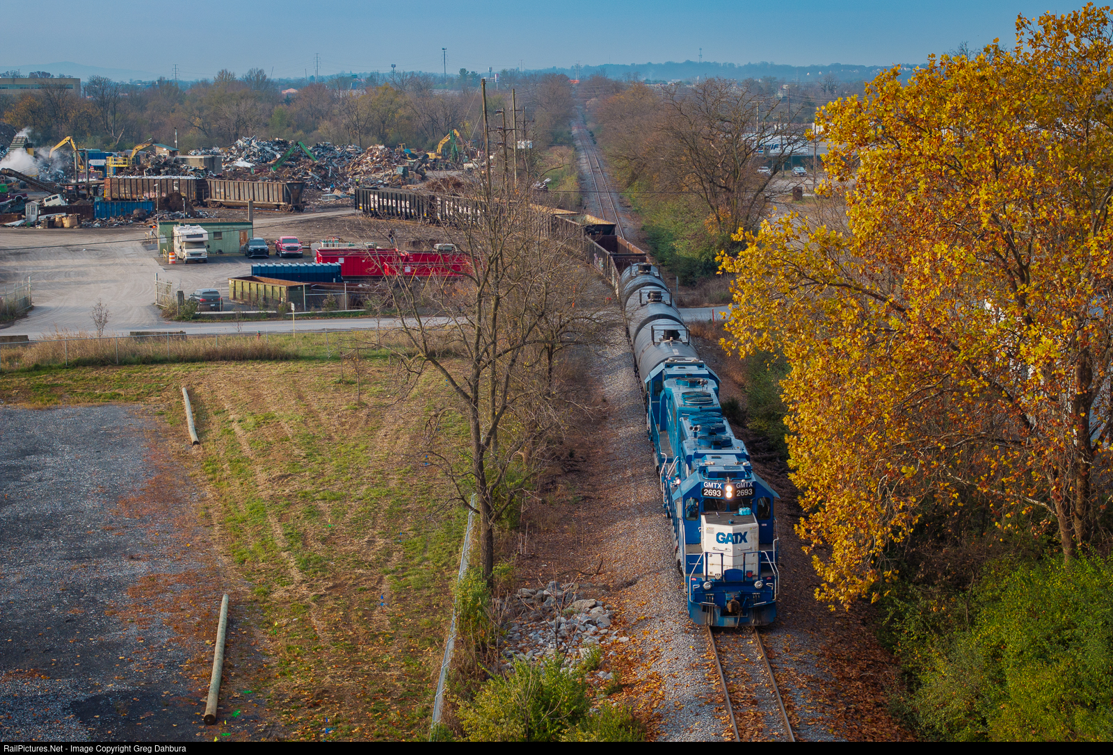 WW102 switches my scrap yard with some of the last signs of fall color visible.