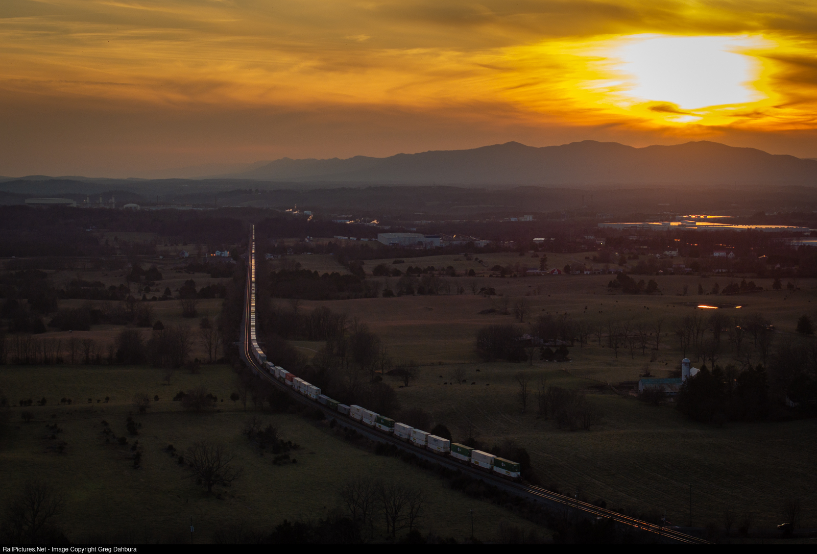 | With trains getting longer and longer, drones offer an interesting perspective. This entire nearly 3 mile long train is visible with a nice sunset as well. |