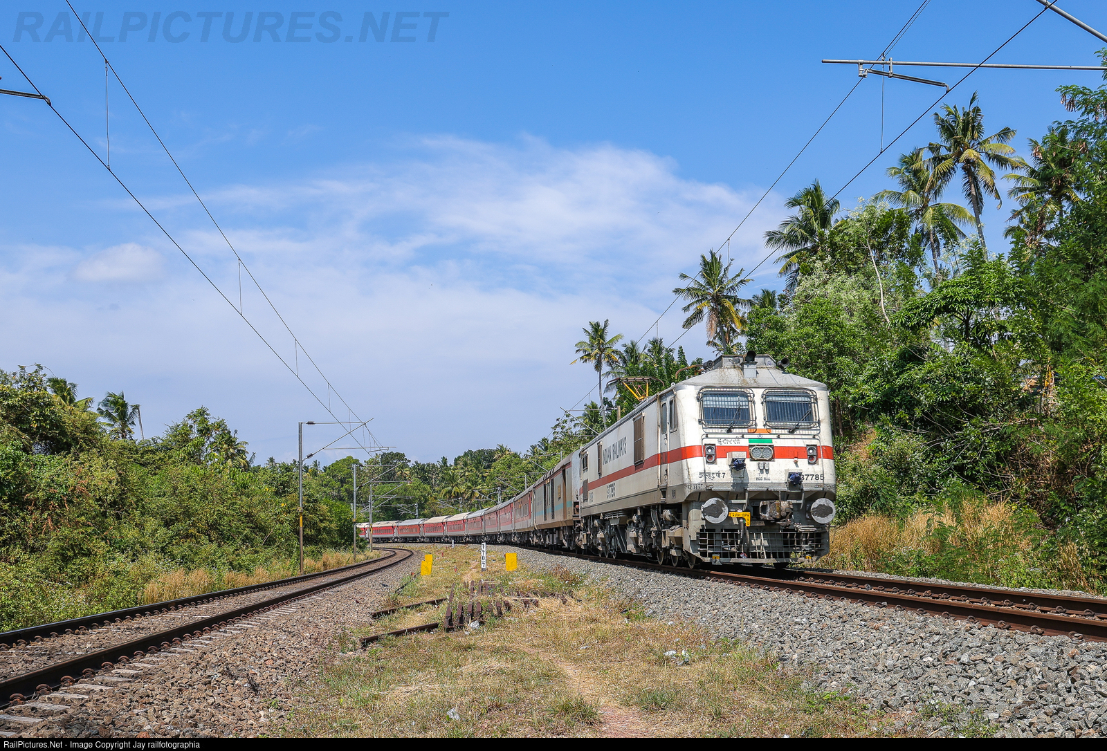 Commissioned in December 2024, ITARSI WAP-7 negotiating curves like the head of a metal snake with Indore - Thiruvananthapuram North Express