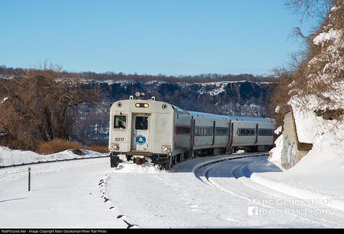 Plow Train.During the previous day's record almost 2 feet of snow, MTA Metro-North Railroad service was suspended, along with service on the rest of the MTA. The next morning, MNCW 6217 leads a plow train through the Spuyten Duyvil Station in the Bronx, New York on Track 2. Track 1 (right) has already been cleared, which shows a comparison of the height of the snow, almost over the third rail.