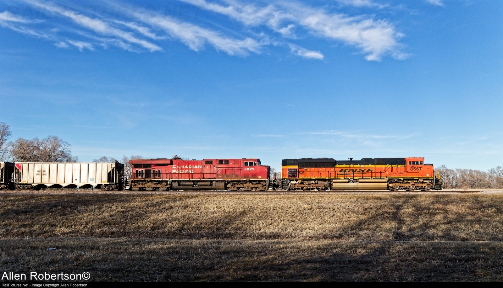 BNSF 8567 & CP 8826 bring up the rear of westbound empties.