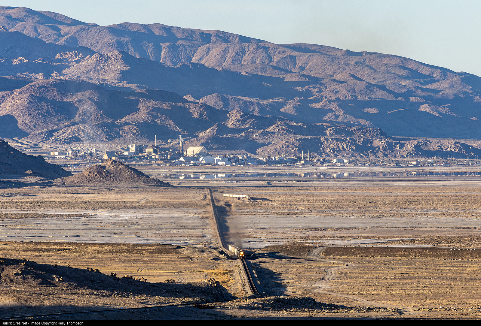 TRC 2006 leads a six pack of 40's out of Trona as they battle the grade up to the Trona Pinnacles. In the background is the plant that keeps the town alive.