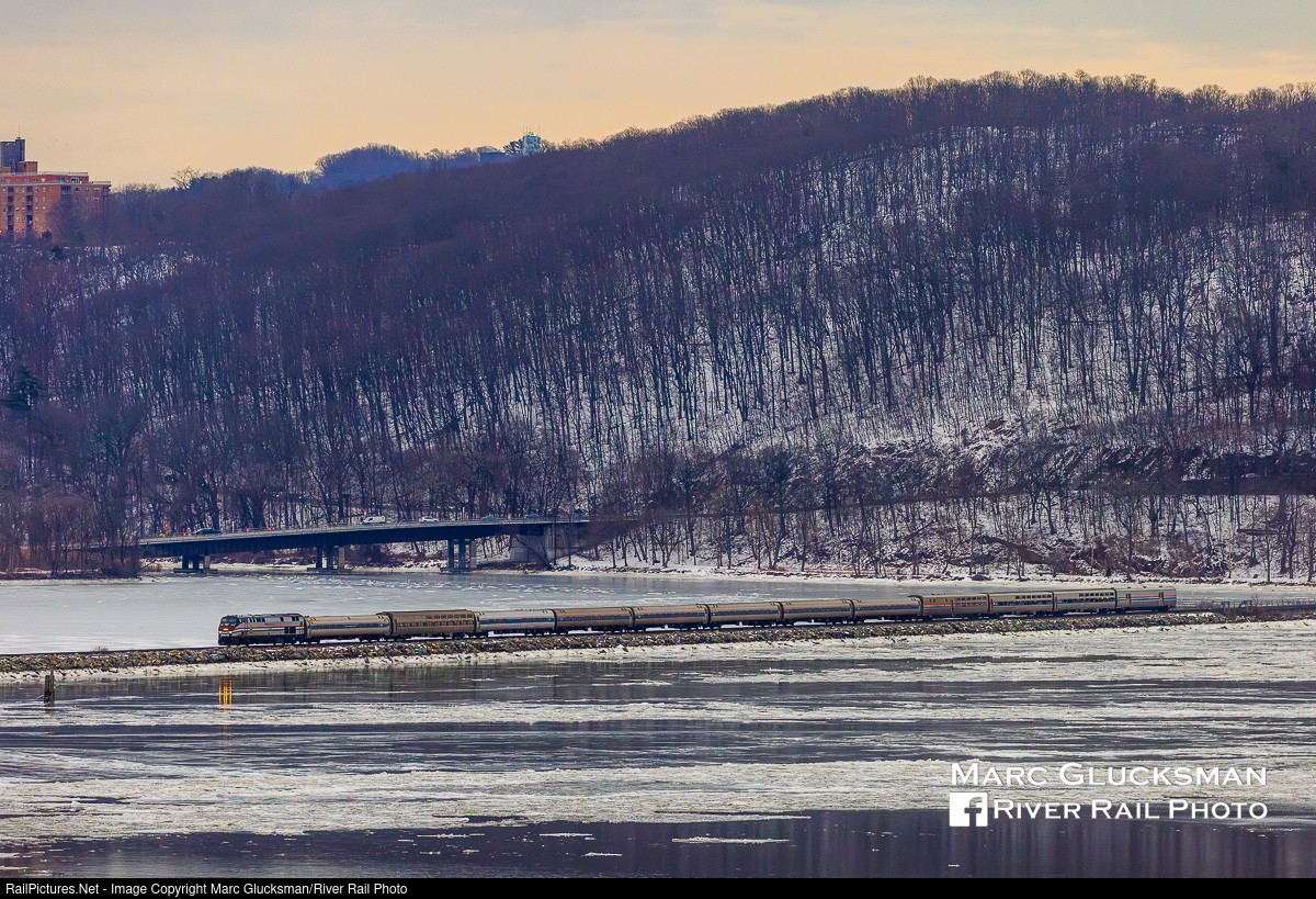 Lengthy Lake Shore. On Saturday, January 25, 2025, Amtrak Train 49 (Lake Shore Limited) included not only the 'Boston Section' but also a deadheading AmFleet I cafe car for an impressive total of 12 cars with AMTK 700 (P32AC-DM, Phase III) solo up front. The train is seen crossing Annsville Creek in Peekskill, New York, about 40 miles into its almost thousand mile journey from New York Penn Station to Chicago, Illinois. The semi-frozen Hudson River and snow on the surrounding hills are the results of the prior week's snowfall and an ongoing cold snap.