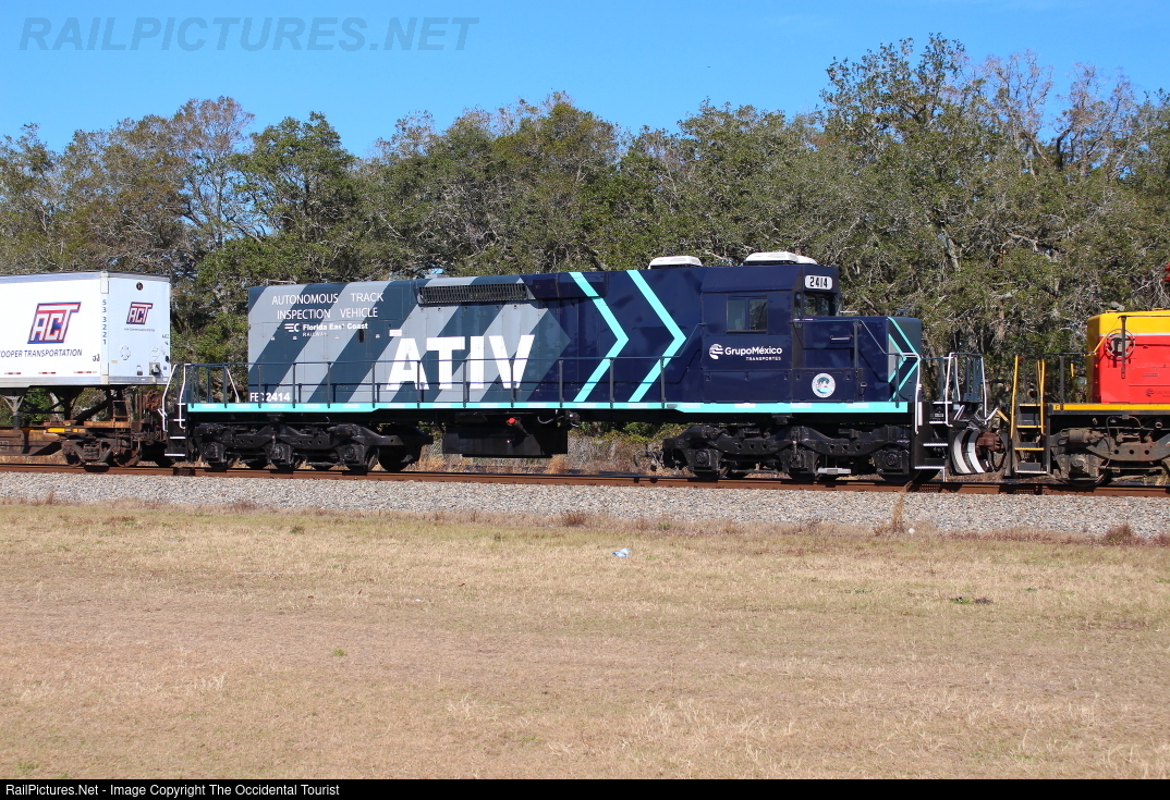 A year ago, when FEC debuted its new Grupo paint with an "open house", the frame of FEC SD40-2 #719 sat in the corner of the shops. They were building a geometry car of sorts, taking a page out the NS handbook. This is why NS Geometry trains no longer visit FEC twice a year. Last visits were in 2022. First, they outfitted a couple of their own locomotives and a couple of Brightline's to view the tracks instead. Now this. Instead of running a dedicated work train, they simply add it to an existing train's consist. It seems to stay running quite a bit, having debuted right after the Toys For Tots special in December.