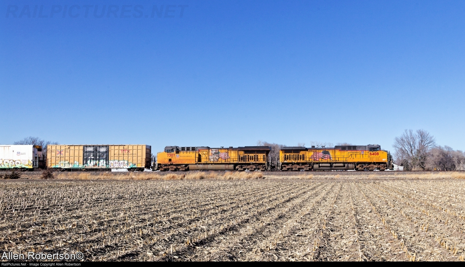 UP 6408 & 7307 power an eastbound mixed freight.