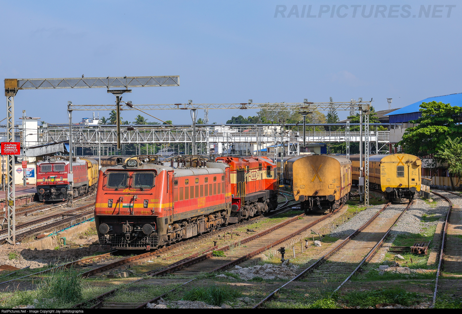 BEZAWADA WAP-4 fitted with anti-collision device, KAVACH, resting in yard along with ERNAKULAM WDM-3A