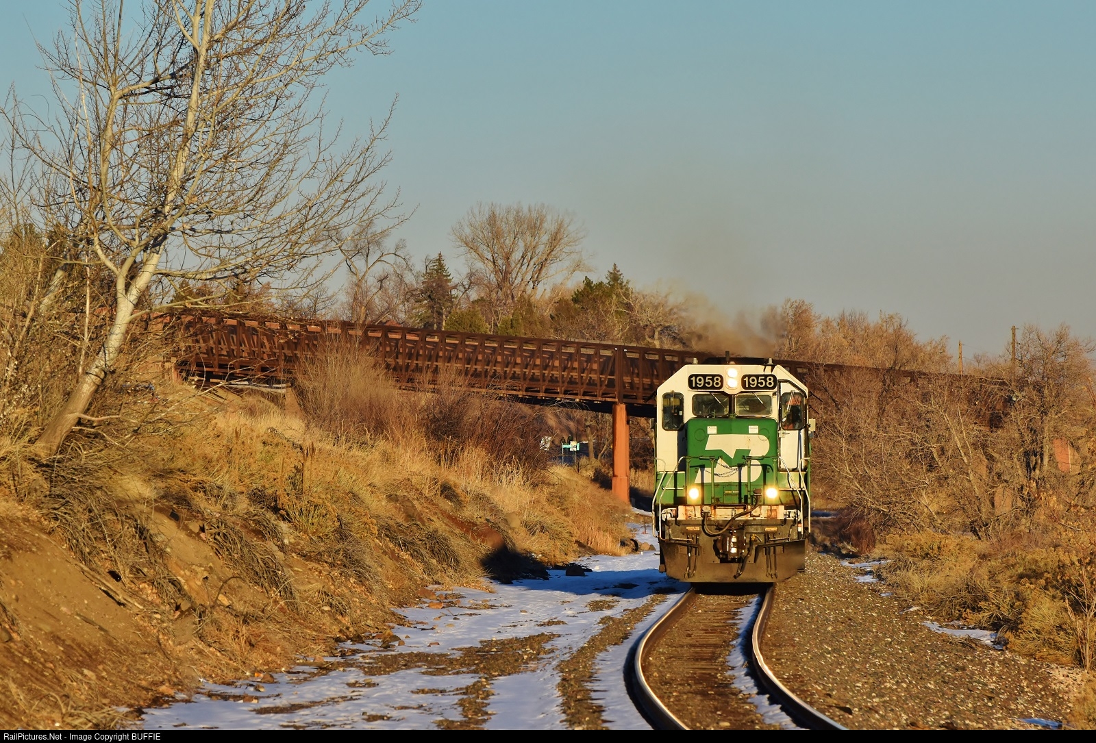 | BNSF 1958 (SD40-2) runs through Golden, Colorado as its way to the yard which is adjacent to the Coors Brewery.