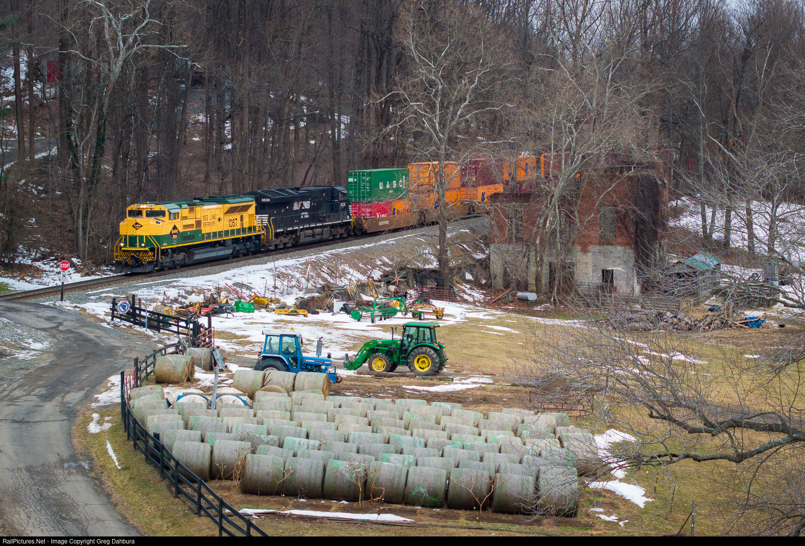 NS 276, a reroute to these areas after a rockslide issue in WV, with the "Reading" heritage unit as a leader, heads past the former "Belle Meade" Distillery just west of Markham, Va. The surviving building is now used by farmers although now missing a roof. There were once several other buildings here and over 200 employees working at the plant, making apple cider brandy. During World War II the plant was used to make some military grade alcohol; the owner overcharged the government and they eventually caught him and the business closed. By the 1970's the buildings were largely demolished and the debris used for fill on nearby I-66.