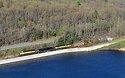 | Charlotteburg Dam - The SU99 runs from Ridgefield Park, NJ to Binghamton, NY. Here the train is powered by a trio of locomotives moving westbound in front of the Charlotteburg Reservior Dam. Picture taken from the ridgeline of Copperas Mountain. |
