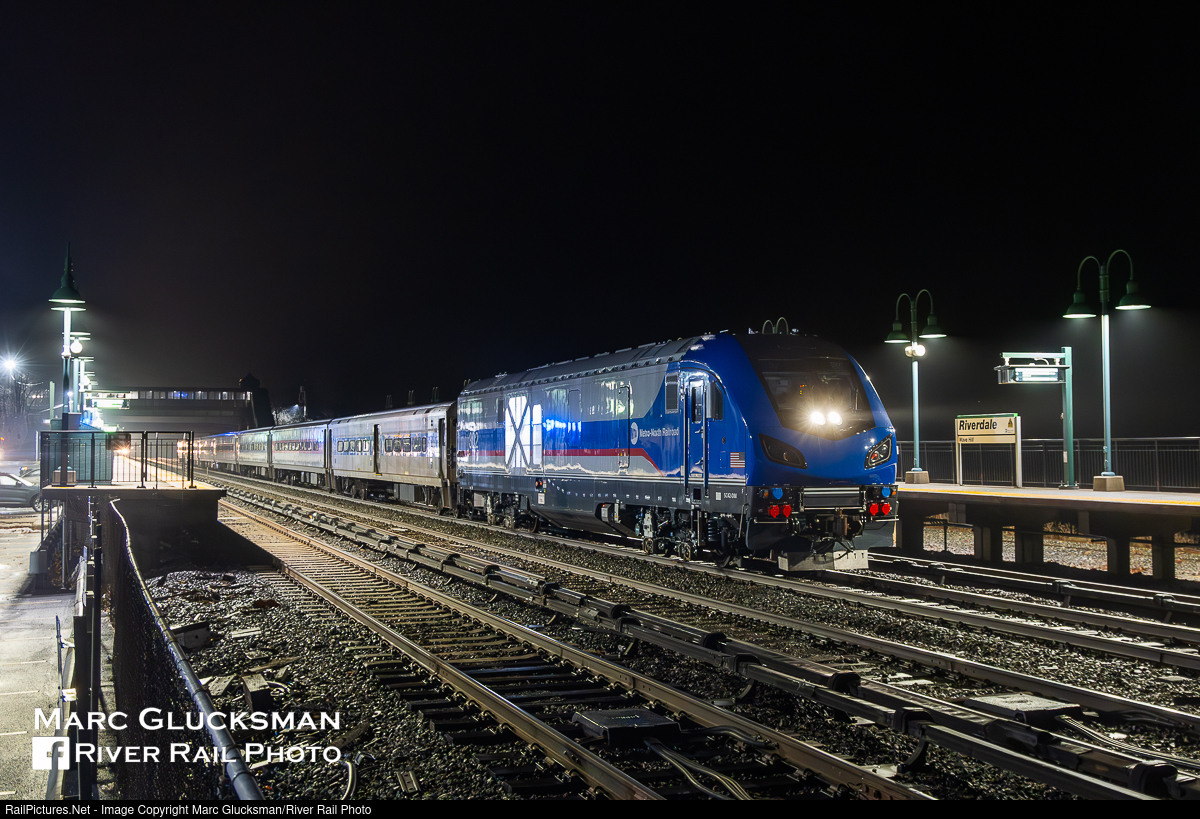 Charging Into The Future In Riverdale. During the week of February 4-6, 2025, MTA Metro-North Railroad/Siemens SC42-DM MNCW 302 tested on the Hudson Line. This testing included simulated stops, even when running on non-platform tracks. This dual mode locomotive is one of 33 on order to start to replace the railroad's General Electric P32s. Though similar to the all diesel design of the SC-44 and ALC-42, these locomotives also had to go to the testing center in Pueblo, Colorado for full evaluation before delivery to Metro-North. The locomotives are much quieter than their predecessors, and also significantly more fuel efficient while providing more power. On this night the train operated both in electric (third rail) mode up to around Croon Harmon, and diesel mode from there to Poughkeepsie. While the (present) GE P32AC-DM fleet changes from electric to diesel mode around the Harlem-125 Street Station, MNR has stated that this locomotive is designed to operate on third rail to the Croton Harmon area, where electrification ends.