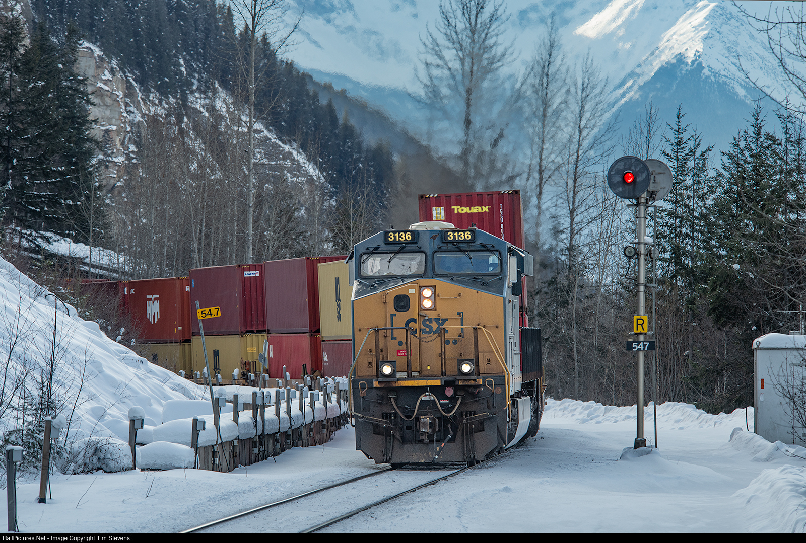RailPictures.Net Photo: CSXT 3136 CSX Transportation (CSXT) GE ET44AC at Mount Robson, British Columbia, Canada by Tim Stevens