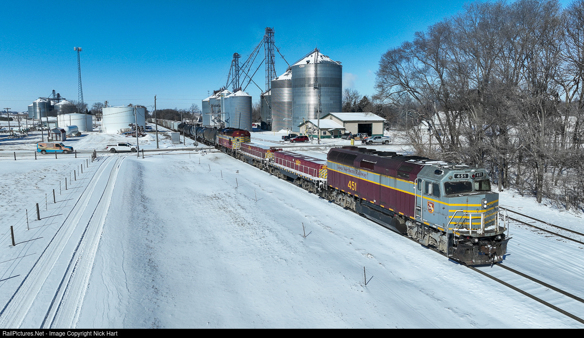 RailPictures.Net Photo: IANR 451 Iowa Northern EMD F40M-2F at Shell Rock, Iowa by Nick Hart