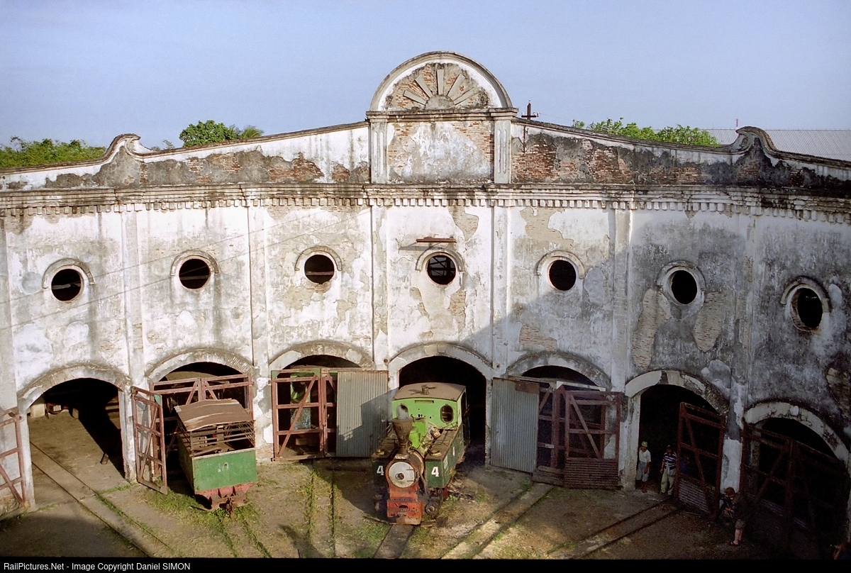 | The half roundhouse at Jatibarang is one of the most impressive railway buildings anywhere on the Java island. It is accessed by means of a turntable. N°4 is resting outside of the building. |