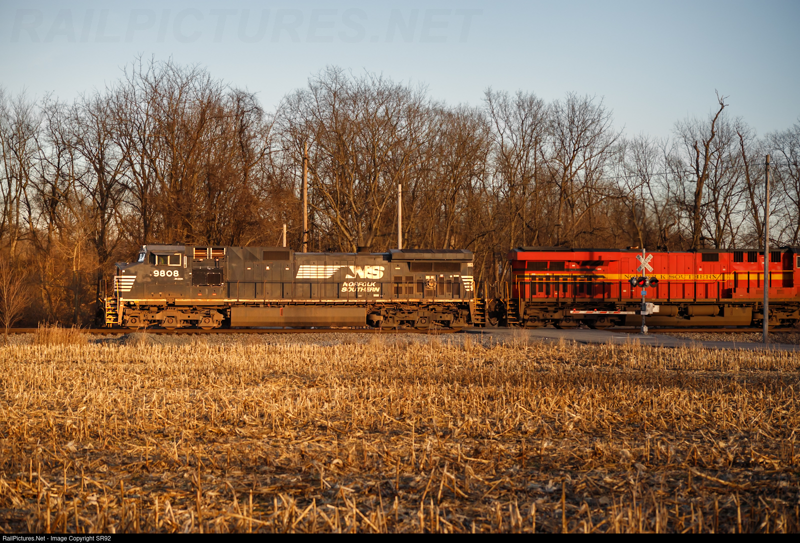 NS 9808 leads 12R past Luther Jones Rd at Shenandoah Junction with beautiful lighting.