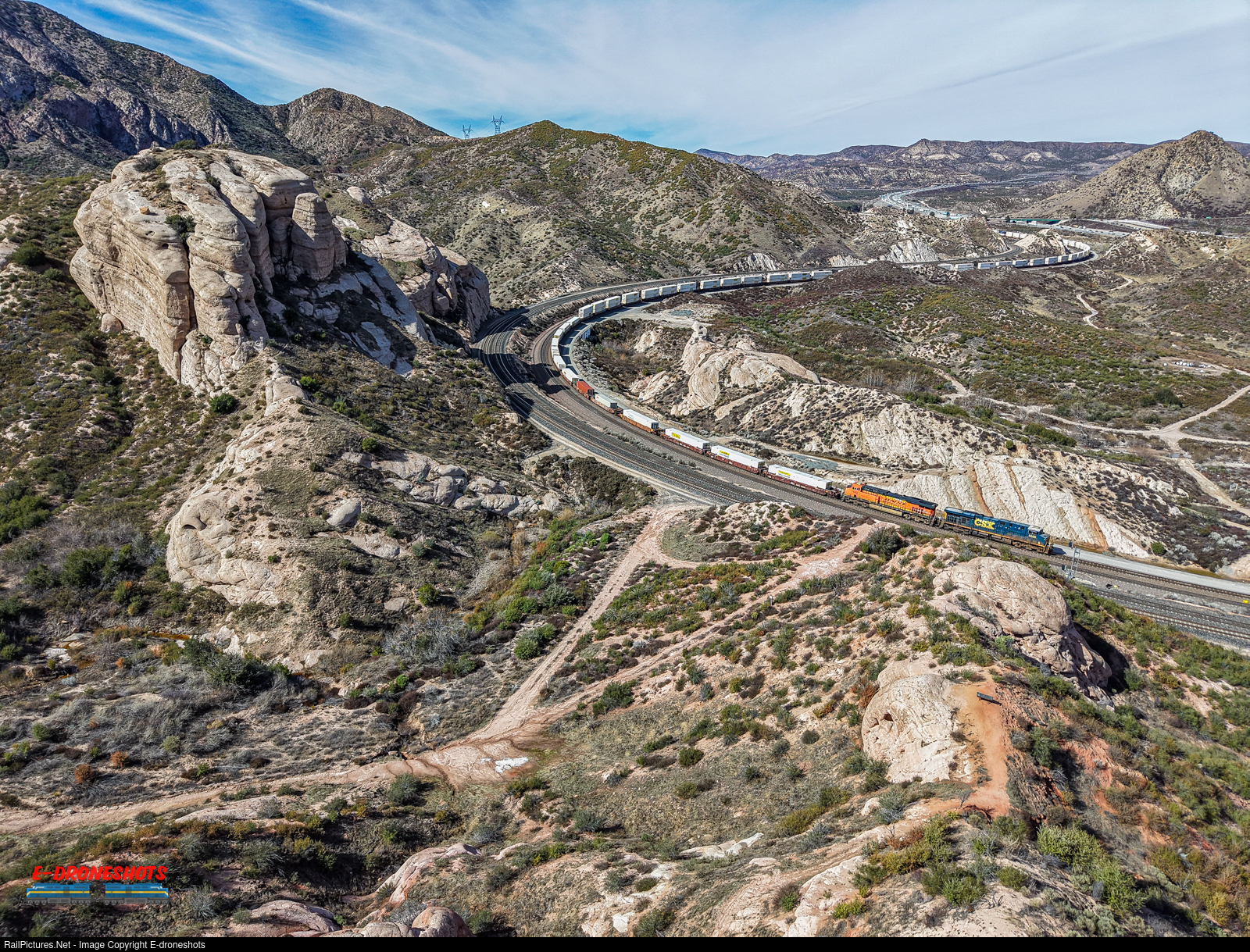 | With a rare occurrence in California, but not so rare back home, CSX 5200 leads a BNSF stack train past Sulliven's Curve making me feel right at home. |