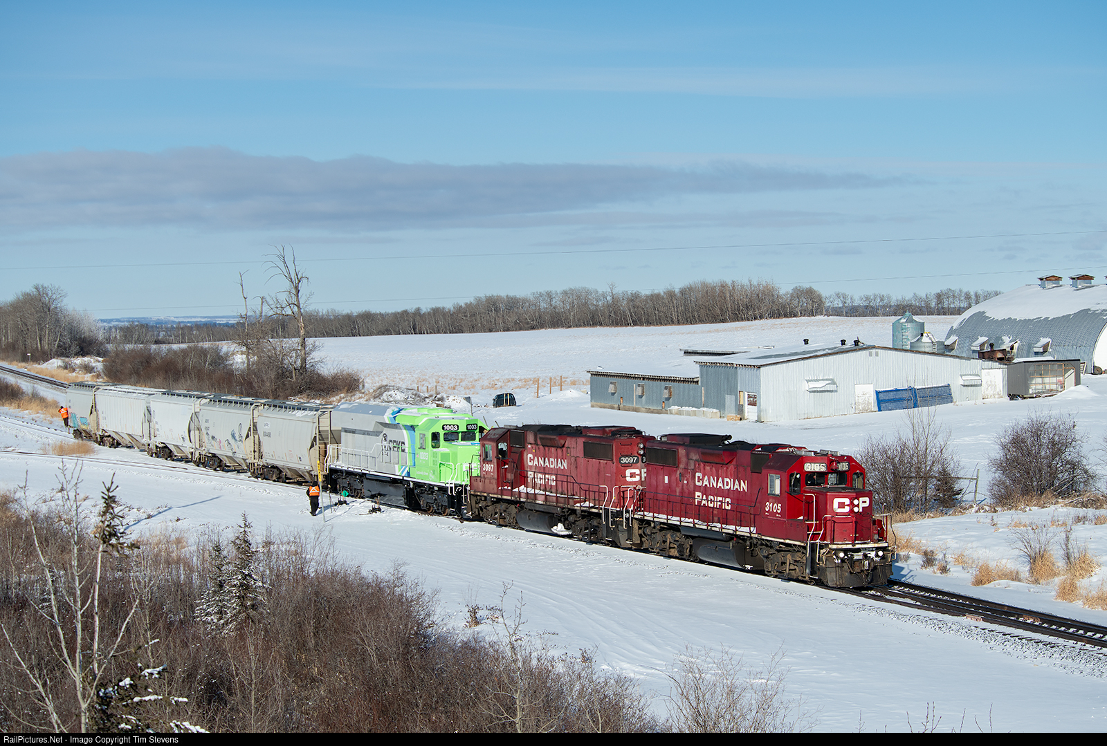 RailPictures.Net Photo: CP 3105 CPKC Railway EMD GP38-2 at Bowden, Alberta, Canada by Tim Stevens